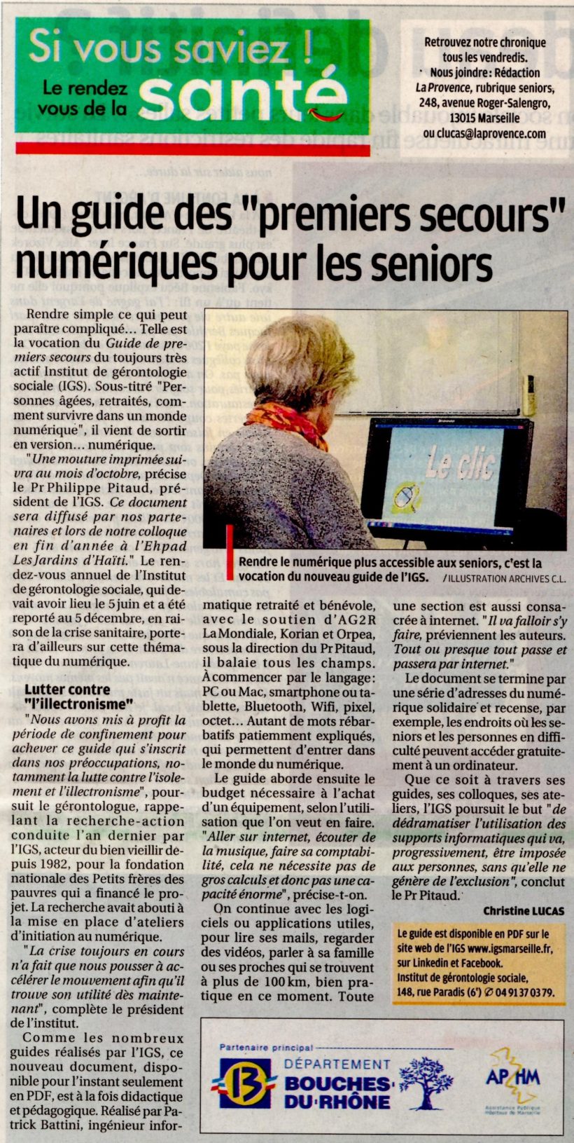 La Provence relaie le lancement du guide des « premiers secours » numériques dans son article du 22 mai 2020 ! Télécharger l’article